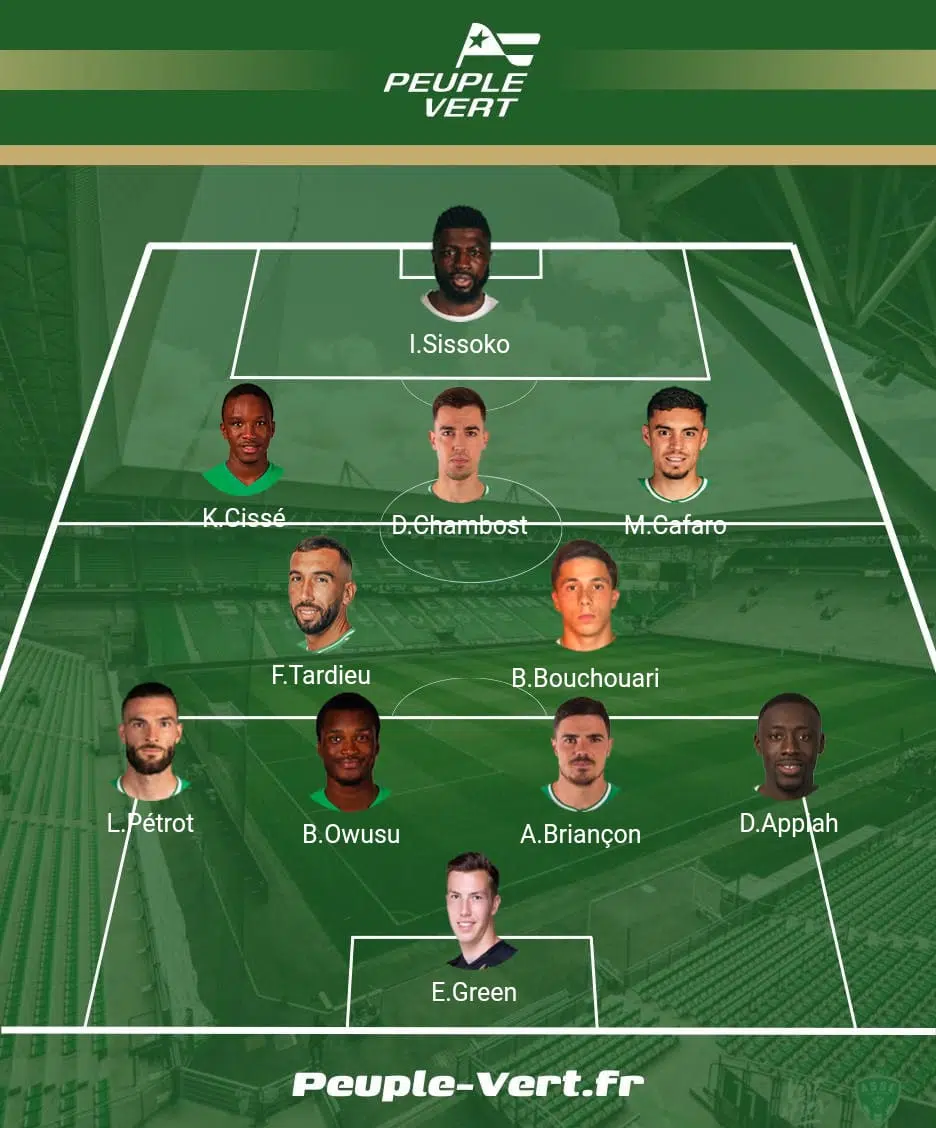 Si l'entraîneur des Verts pourrait opter pour décaler Dylan Chambost, nous lancerions le jeune Cissé d'entrée. De quoi lui donner l'occasion de montrer qu’il a le niveau pour jouer en équipe professionnel. Ses qualités de vitesse, de dribbles et de passe pourraient lui permettre de mettre le feu sur son côté.