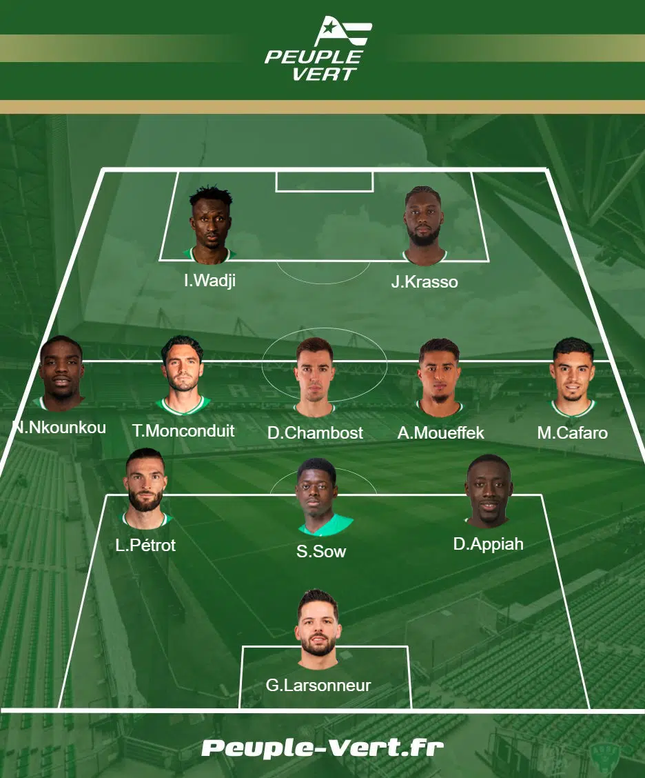 L'entraîneur stéphanois devait trancher sur plusieurs incertitudes. Tout d'abord celle de l'attaque. Qui de Bamba ou Wadji doit commencer la rencontre ? Qui pour remplacer Fomba suspendu, Monconduit encore juste physiquement ou Bouchouari dans un rôle de sentinelle basse ? Enfin, Anthony Briançon va-t-il jouer ou non ? Le coach stéphanois a tranché, voici son onze de départ.