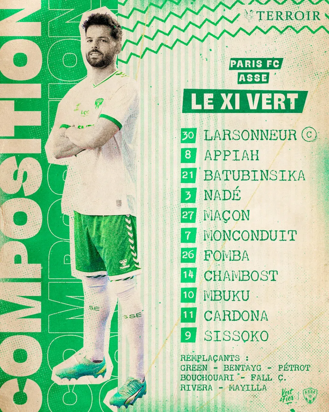 Les Verts se déplacent à Charléty ce samedi à 15h00. L’ASSE, qui reste sur 3 victoires de suite, veut confirmer face au Paris FC avant la réception du leader auxerrois samedi prochain. Olivier Dall’Oglio doit composer avec plusieurs absents pour cette rencontre face aux parisiens. Voici la composition choisie par le coach stéphanois.