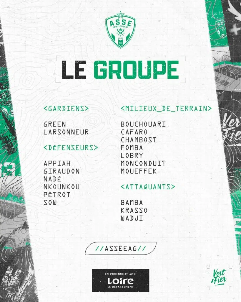 [#ASSEEAG] 👥 𝗦𝘁𝗲́𝗽𝗵𝗮𝗻𝗲 𝗗𝘂𝗺𝗼𝗻𝘁 a retenu un groupe de 1⃣8⃣ joueurs pour affronter Saint-Étienne demain.#TeamEAG #WarRaok pic.twitter.com/szksqNdYtr