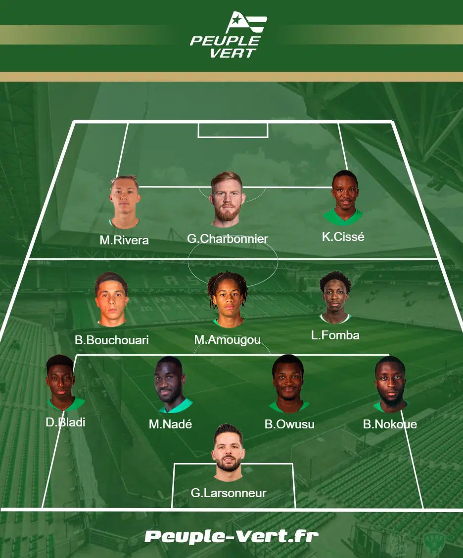Il est coutume de donner du temps de jeu au gardien remplaçant lors des matchs de coupe. Seulement Etienne Green a pu profiter de plusieurs rencontres suite à la blessure de Gautier Larsonneur. Afin de lui permettre d'enchaîner et de retrouver des sensations, l'ancien valenciennois devrait être titularisé. Avec une jeune défense, il voudra encadrer les jeunes joueurs qui composent la défense de l'ASSE !