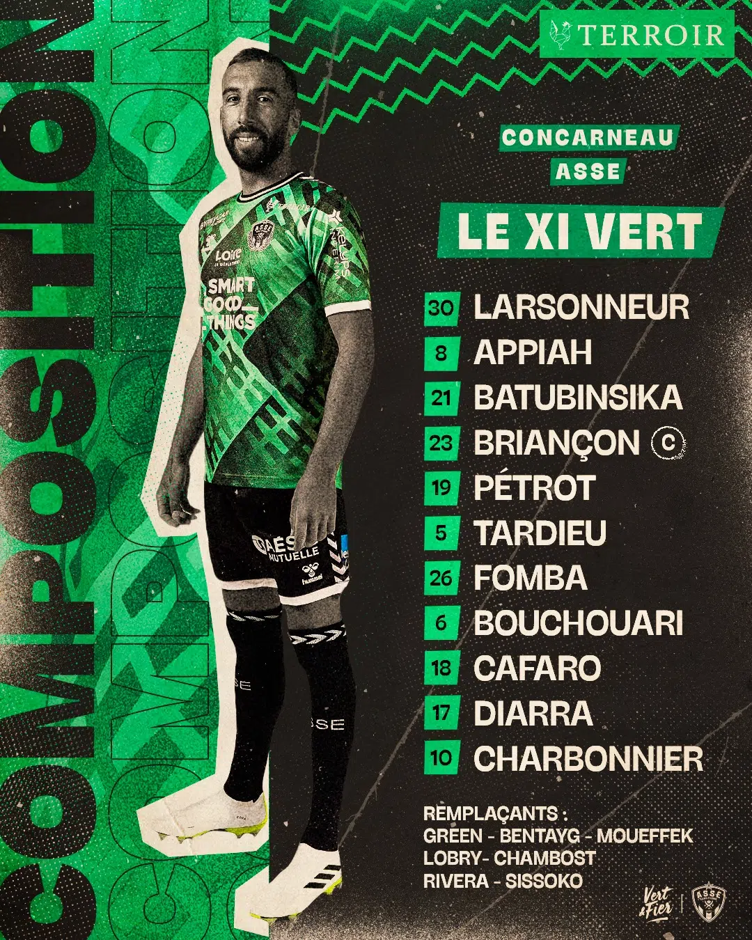 Les Verts se déplacent ce samedi à Lorient pour y affronter le promu Concarneau. Après un début de saison marqué par des difficultés à prendre des points, l'ASSE reste sur 4 matchs sans défaite. De plus, la victoire chez le leader à Caen le week-end dernier à redonner de l'élan au groupe. Voici le 11 concocté par Laurent Batlles.