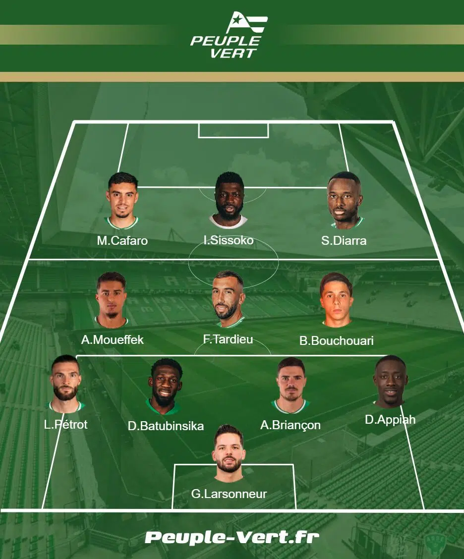 Les Verts récupèrent Florian Tardieu au milieu de terrain. En manque de rythme, Thomas Monconduit n'a pas marqué des points à Bordeaux. Régulièrement en retard, il manque aujourd'hui d'intensité. L'ancien troyen, de retour de suspension, devrait retrouver sa place dans l'entrejeu stéphanois.