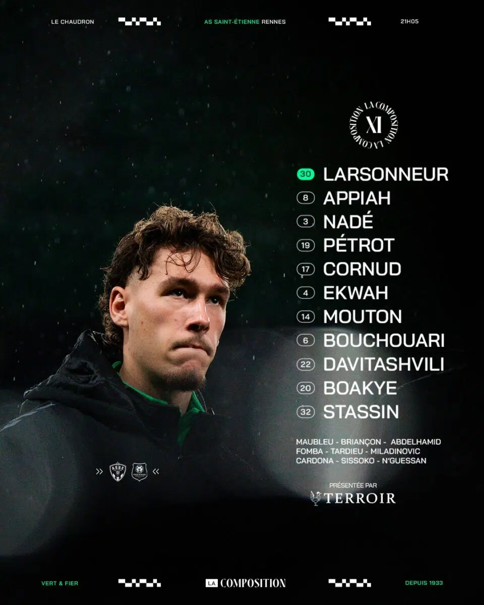 L'ASSE reçoit le Stade Rennais à 21h05, ce samedi 8 février dans le cadre de la 21ᵉ journée de Ligue 1. Avec le maintien comme objectif principal, Eirik Horneland pourra s’appuyer sur l’ensemble de son effectif face aux Bretons. L’entraîneur norvégien a dévoilé sa compo pour le match à venir.