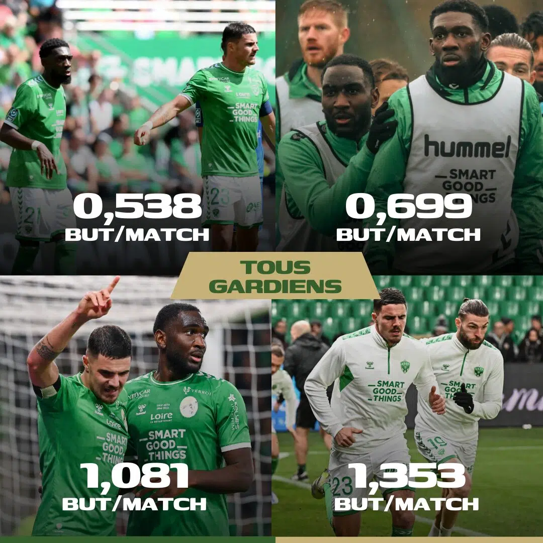 Pourtant, sur l'ensemble de la saison, les chiffres donnent raison à au défenseur de 28 ans. Nous avons étudié les 38 matchs de Ligue 2 disputés par les Verts et avons analysé les défenses centrales en place au moment d'encaisser les 31 buts concédés sur la saison.