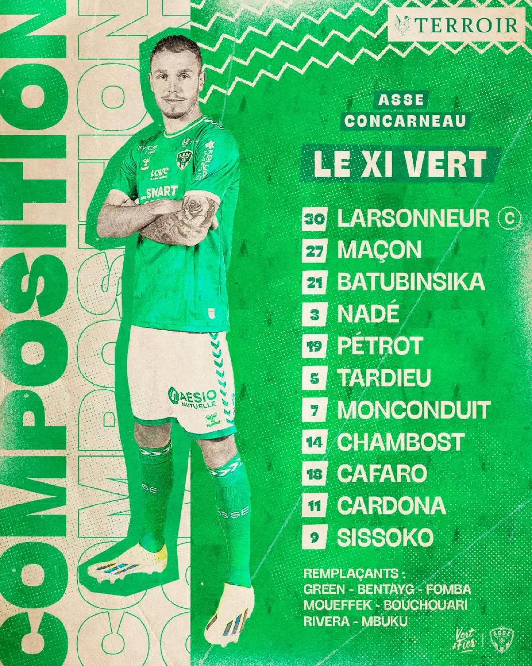 L'ASSE reste sur sept matchs sans défaites (six victoires et un nul). Les joueurs d'Olivier Dall'Oglio seraient bien inspirés de poursuivre cette belle série. C'est Concarneau qui se dresse devant les Verts ce samedi à 15h. En attendant, voici les 11 hommes choisis par le staff stéphanois pour commencer la rencontre.