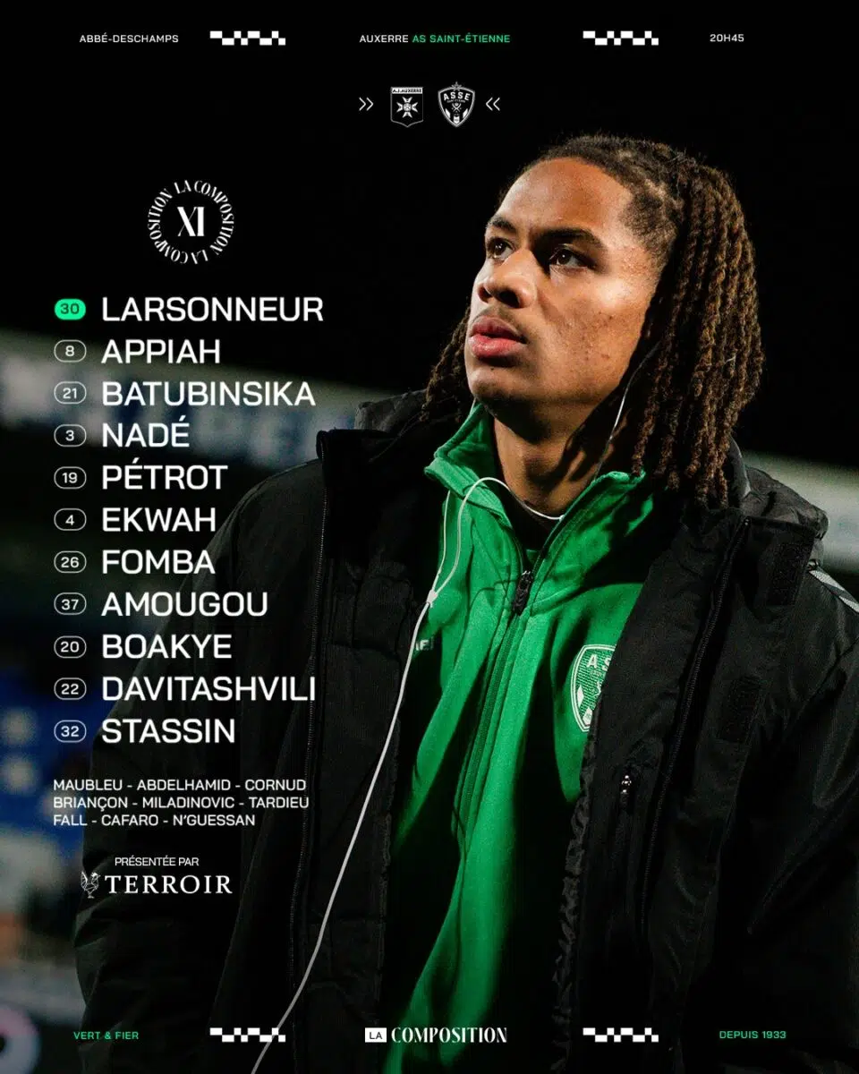 L'AS Saint-Étienne (ASSE) se prépare à défier l'AJ Auxerre pour le compte de la 19ᵉ journée de Ligue 1. Cette rencontre cruciale est programmée pour le vendredi 24 janvier 2025 à 20h45 au Stade de l’Abbé Deschamps. Le staff stéphanois, confronté à de nombreuses absences, a dû opérer des choix importants pour établir le onze de départ.