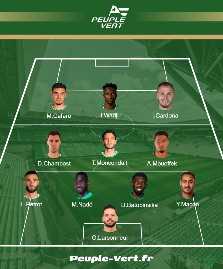 Sur les côtés, Yvann Maçon devrait à nouveau être aligné au poste de latéral droit. Dennis Appiah a effectué son retour à la compétition ce mardi en fin de rencontre. Encore court. A gauche, Léo Pétrot retrouvera une place de titulaire après la seconde titularisation en vert de Mahmoud Bentayg.
