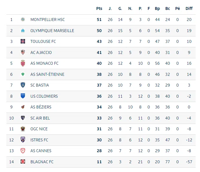 Large premier lors de la phase aller avec notamment une marquante victoire 5-1 à Monaco lors du premier match de la phase retour, l'AS Saint-Etienne se sera effondrée en perdant notamment contre Nice, Saint-Priest, Ajaccio, Cavigal Nice et l'Olympique de Valence. Un bilan global décevant.