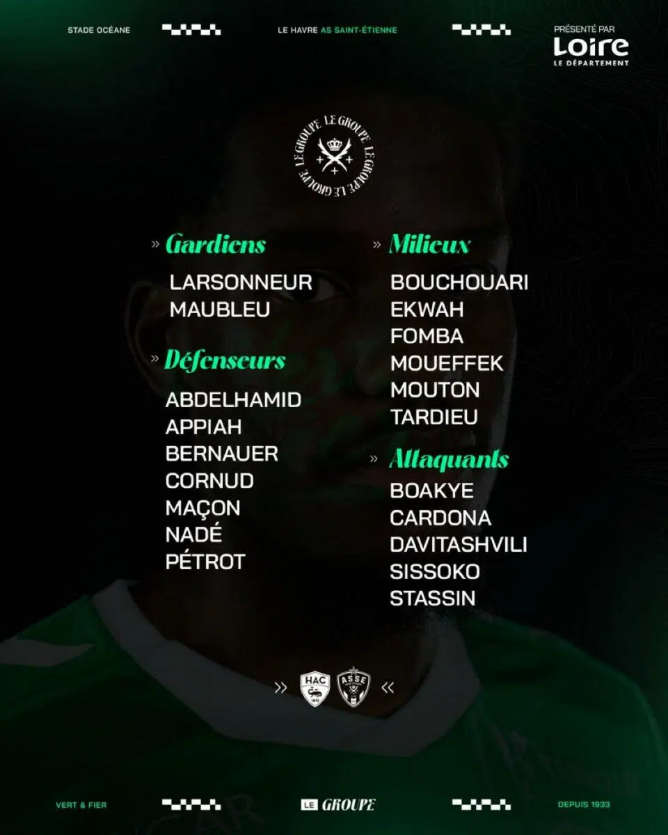 Enfin, Ibrahima Wadji reste encore trop juste, privant ainsi l’ASSE d’une solution offensive supplémentaire. En revanche, Miladinovic et Briançon, absents du dernier match, etaient à la disposition du staff.