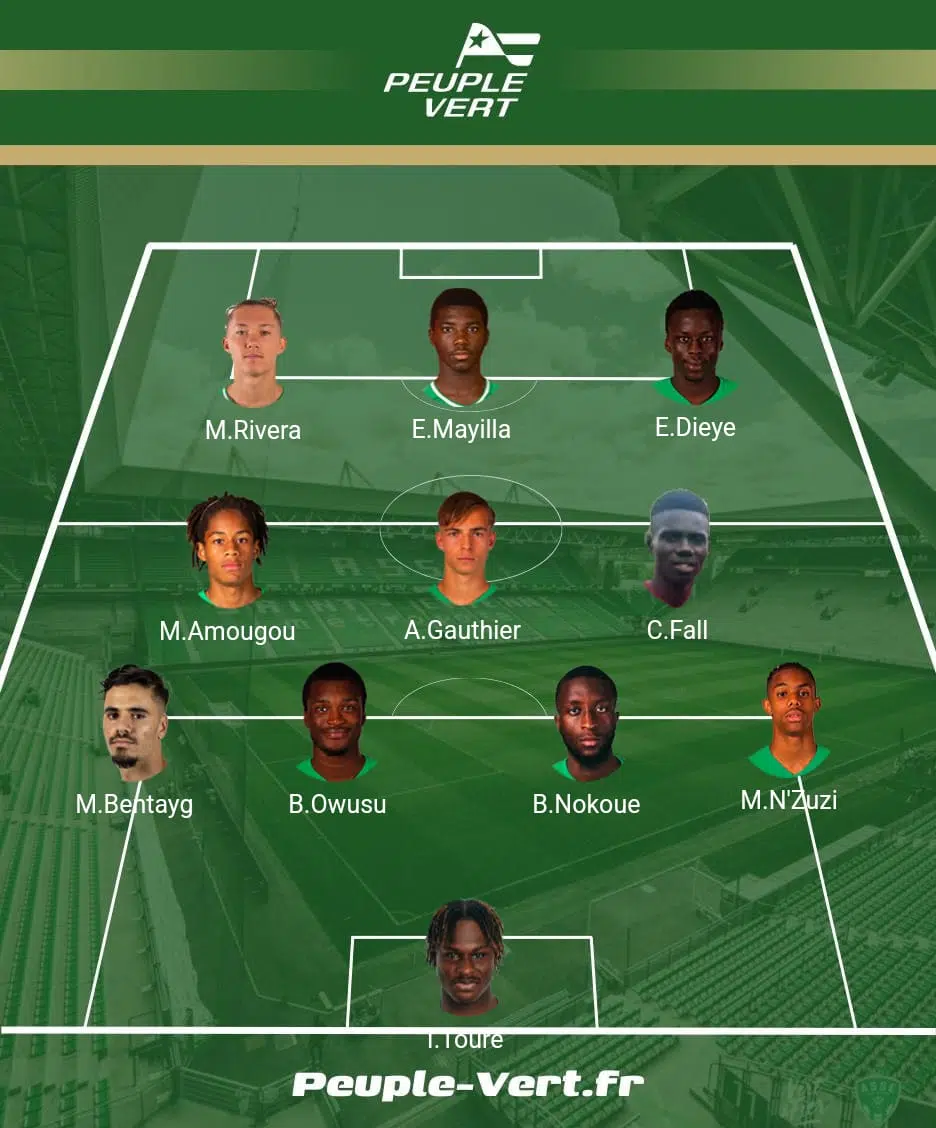 La réaction de l'OL survient sur une perte de balle de Djile Nokoue mais la frappe lyonnaise passe à côté du but d'Issiaka Toure. Sur une récupération haute de Rivera, le droitier lance Mayilla dans la profondeur qui trompe le portier des visiteurs. 2-0 pour l'ASSE, c'est le score à la pause dans ce derby. Les Verts sont dans le vrai.