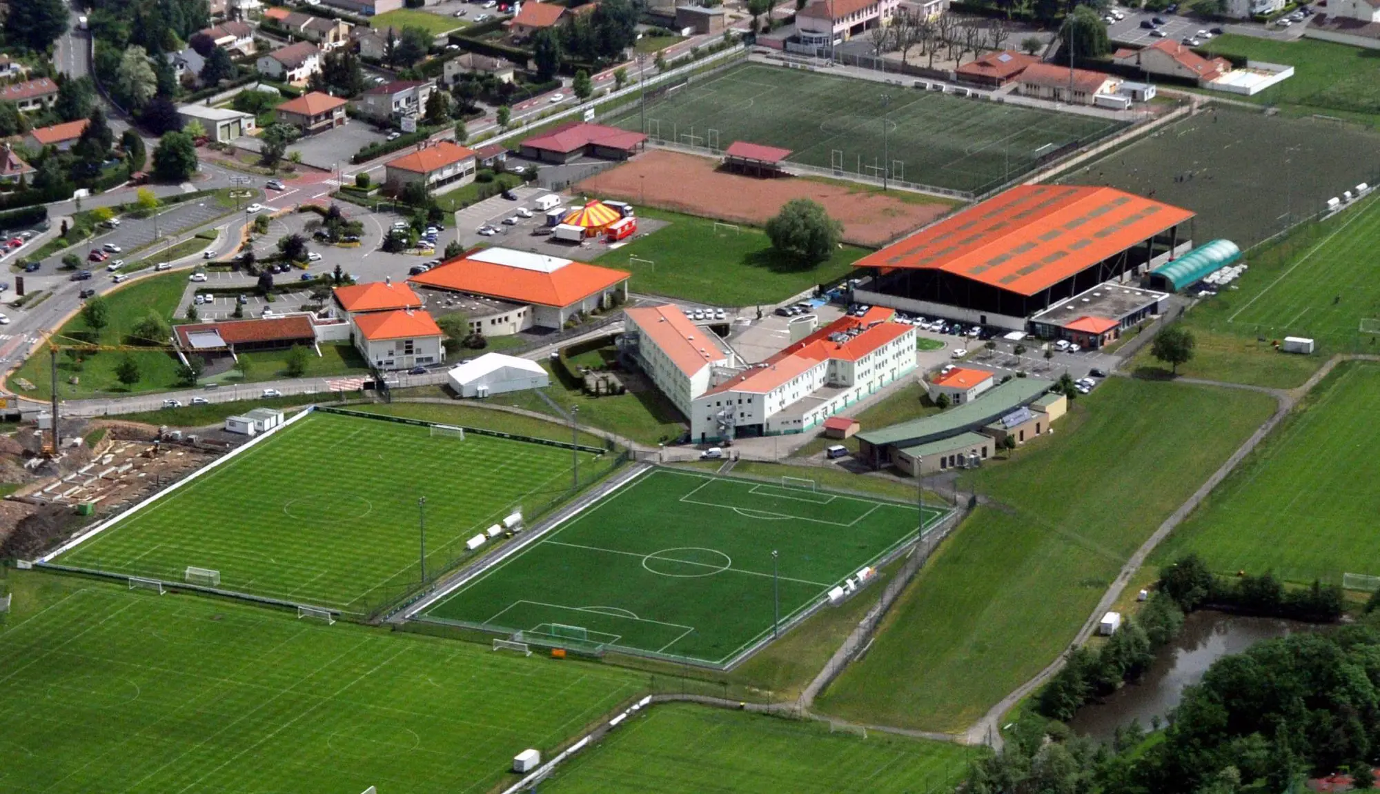 Vue aerienne du centre d'entrainement et siege social de l'As Saint Etienne l'Etrat Loire France qui va etre rebaptise Centre Robert Herbin