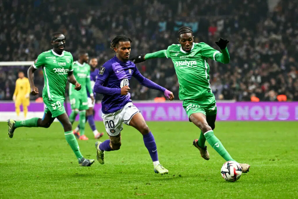 26 Lamine FOMBA (asse) - 10 Yann GBOHO (tfc) during the Ligue 1 McDonald's match between Toulouse and Saint-Étienne at Stadium de Toulouse on December 13, 2024 in Toulouse, France. (Photo by Anthony Dibon/Icon Sport) - Photo by Icon Sport