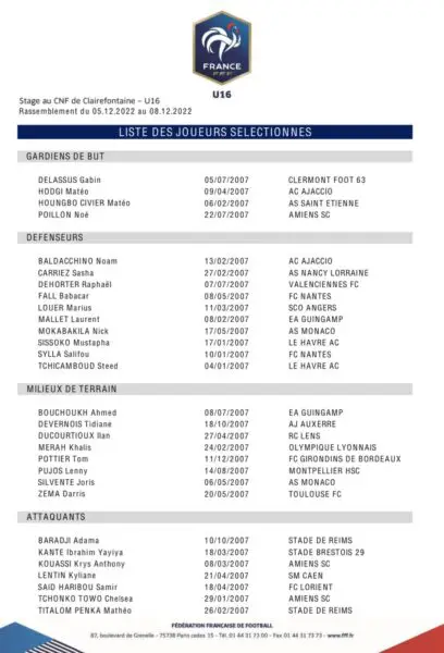 Une liste dans laquelle n'apparait pas Luan Gadegbeku qui avait été de toutes les précédentes. En effet, par rapport au tournoi du Val de Marne (dernier rassemblement de l'équipe de France U16), la liste a complètement changé. Le sélectionneur semble vouloir voir de nouveaux joueurs. Une façon de commencer à travailler pour l'Euro U17 qui se jouera en mai 2024 pour la génération 2007.