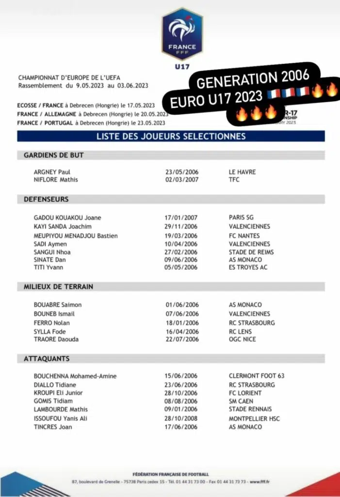 La liste de 21 joueurs est sortie. Malheureusement, le stéphanois Mathis Amougou ne figure pas parmi cette liste. En effet, il est blessé et ne peut tenir sa place pour cette compétition. Sûrement un coup dur pour le joueur ! Néanmoins, selon nos informations, le joueur devrait faire la reprise avec le groupe professionnel pour la saison 2023-2024.