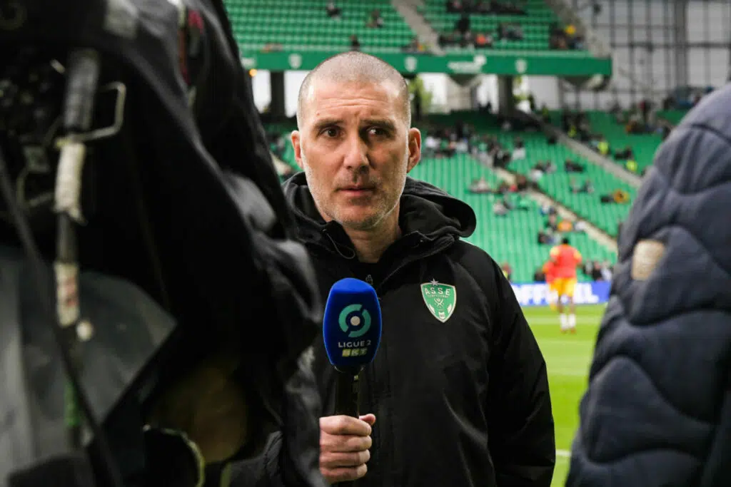 Saint Etienne headcoach Laurent BATTLES during the Ligue 2 BKT match between Saint Etienne and Quevilly Rouen Metropole at Stade Geoffroy-Guichard on May 20, 2023 in Saint-Etienne, France. (Photo by Daniel Derajinski/Icon Sport)
