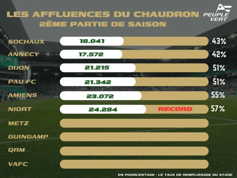 - Saint-Etienne – Niort : 24 284 spectateurs