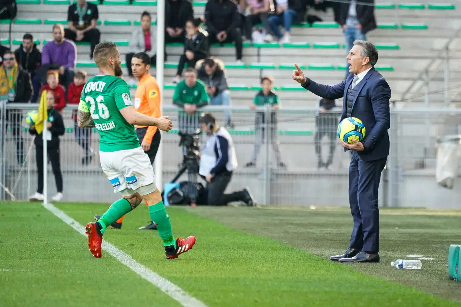 Claude PUEL coach of Saint Etienne and Mathieu DEBUCHY of Saint Etienne during the Ligue 1 match between AS Saint-Etienne and Stade Reims at Stade Geoffroy-Guichard on February 23, 2020 in Saint-Etienne, France. (Photo by Pierre Costabadie/Icon Sport)