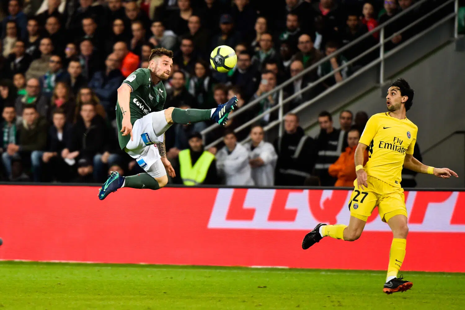 Mathieu Debuchy of Saint Etienne during the Ligue 1 match between AS Saint-Etienne and Paris Saint Germain at Stade Geoffroy-Guichard on April 6, 2018 in Saint-Etienne, . (Photo by Romain Lafabregue/Icon Sport)