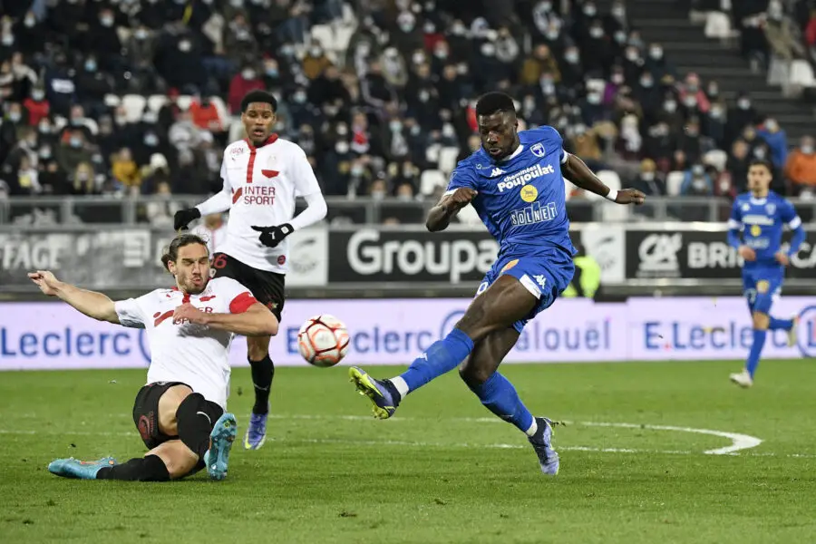 14 Mateo PAVLOVIC (asc) - 09 Ibrahim SISSOKO (cnfc) during the Ligue 2 BKT match between Amiens and Niort at Stade de la Licorne on February 12, 2022 in Amiens, France. (Photo by Christophe Saidi/FEP/Icon Sport) - Photo by Icon sport