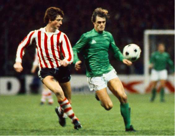 Au match aller, face au PSV Eindhoven, Johnny Rep, le « traitre », a reçu un traitement musclé