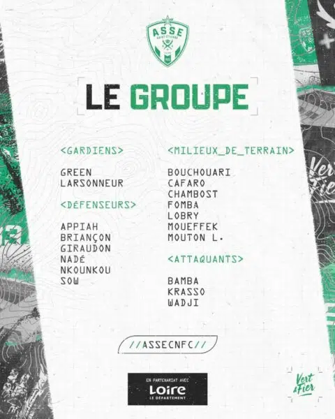 👥 Les 𝟭𝟴 𝗖𝗵𝗮𝗺𝗼𝗶𝘀 convoqués pour le déplacement au Chaudron ! 🔋#ASSECNFC #EnsembleToujours pic.twitter.com/XXM5bgWX84
