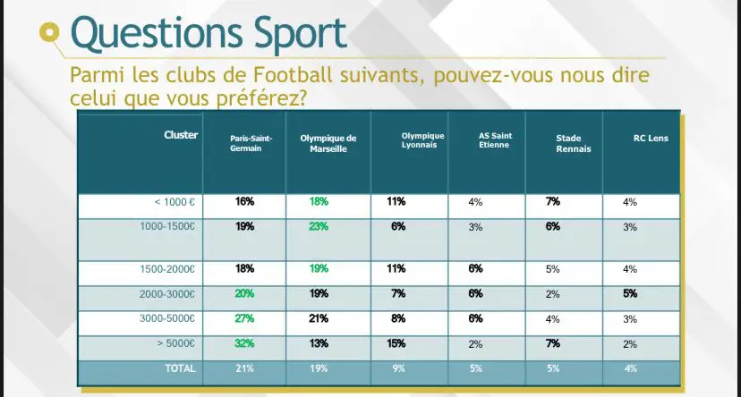 A la question : "Parmi les clubs de Footballs suivant, pouvez-vous nous dire celui que vous préférez ?