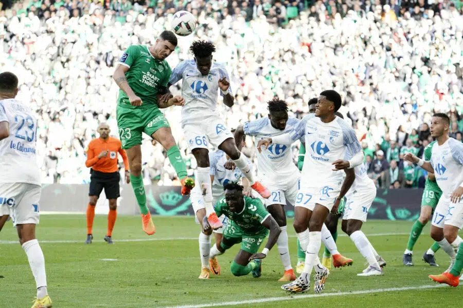 23 Anthony BRIANCON (asse) - 66 Mamadou DIARRA (gf38) - 97 Jordan TELL (gf38) during the Ligue 2 BKT match between Saint-Etienne and Grenoble at Stade Geoffroy-Guichard on October 1, 2022 in Saint-Etienne, France. (Photo by Dave Winter/FEP/Icon Sport) - Photo by Icon sport