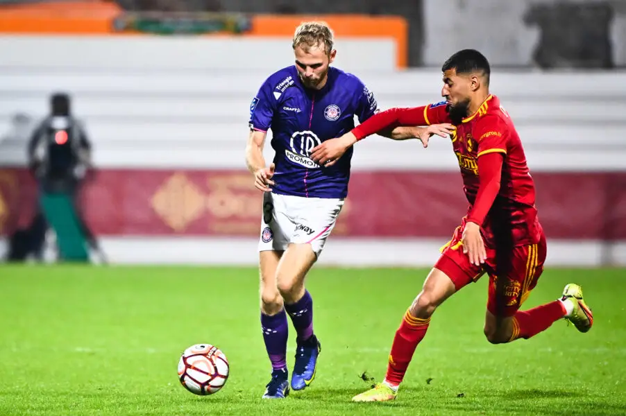 03 Mikkel Desler PUGGAARD (tfc) - 07 Nassim OUAMMOU (raf) during the Ligue 2 BKT between Rodez and Toulouse on May 1, 2022 in Rodez, France. (Photo by Alexandre Dimou/FEP/Icon Sport) - Photo by Icon sport