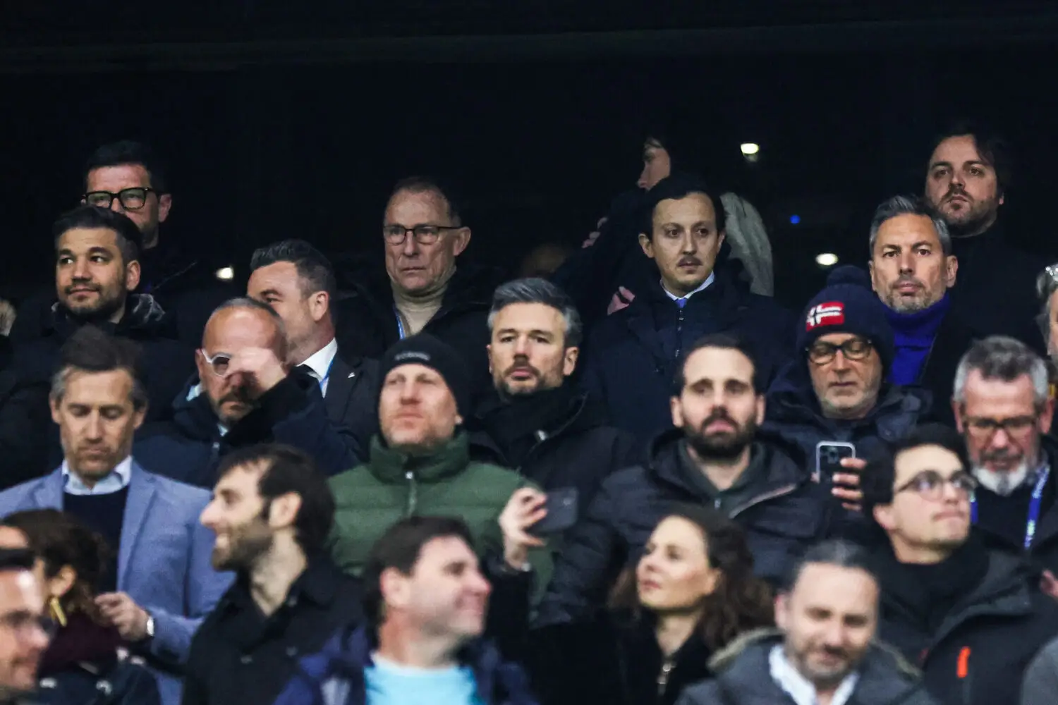 Sebastien FARAGLIA president of Annecy, Jean-Pierre PAPIN, Pablo LONGORIA president, Javier RIBALTA head of football and David FRIIO head of marketing of Marseille during the Quarter-Final French Cup match between Marseille and Annecy at Orange Velodrome on March 1, 2023 in Marseille, France. (Photo by Johnny Fidelin/Icon Sport)
