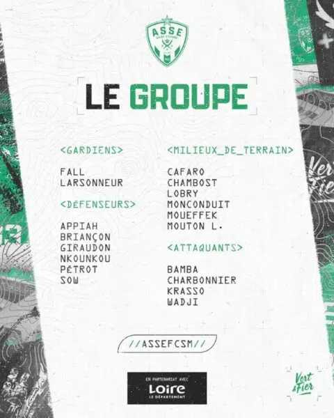 Laurent Batlles vient de dévoiler le groupe qui aura pour mission de poursuivre la série d'invincibilité des Verts. Un groupe sans surprise. Tout le monde (ou presque) est donc sur le pont pour tenter de sortir de la zone de relégation dès ce week-end.