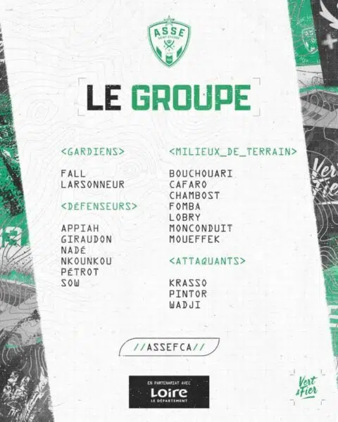 En effet, Gaëtan Charbonnier est indisponible pour cette rencontre décisive. Le buteur des Verts souffre depuis plusieurs jours du dos. Déjà souffrant face à Bastia, il ne peut tenir sa place face à Annecy. En espérant un retour rapide pour l'expérimenté et précieux Charbonnier.