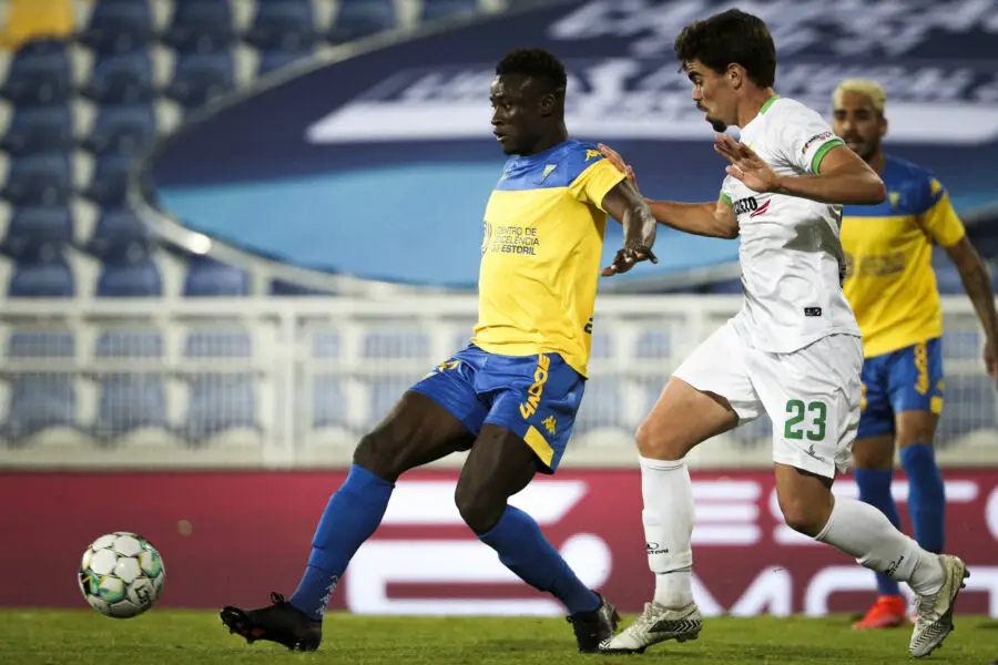 Estoril, 05/20/2021 - The Grupo Desportivo Estoril Praia SAD hosted the Clube Desportivo de Mafra tonight at the António Coimbra da Mota stadium, in a game counting for the 34th round of the II Liga 2020/2021. Yakubu Aziz (Filipe Amorim / Global Imagens)