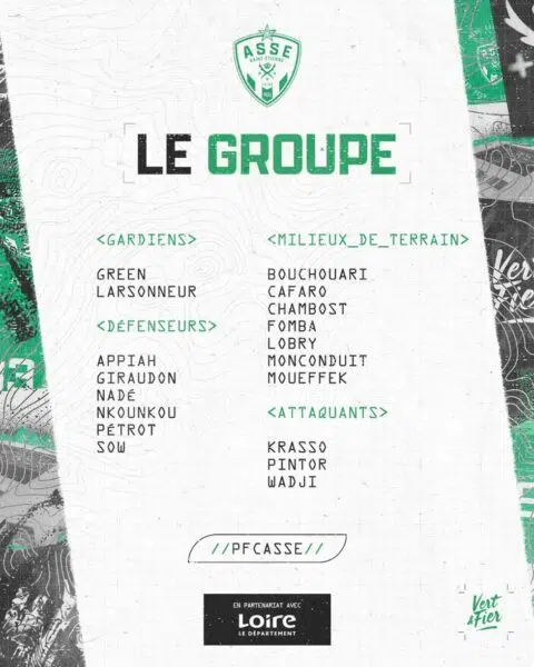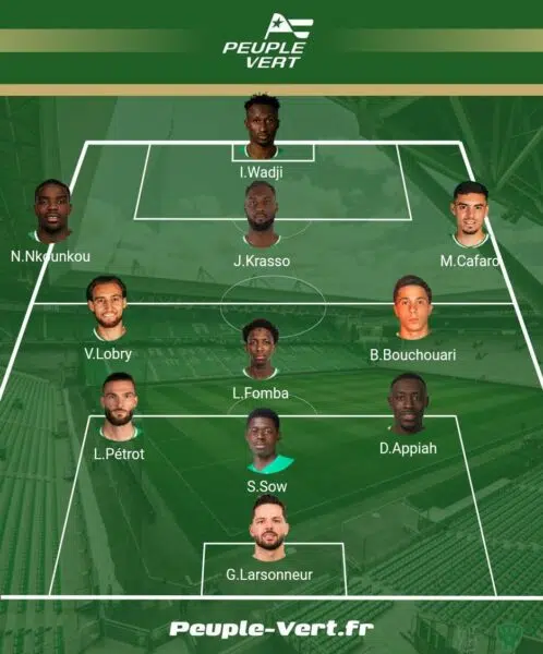 Léo Pétrot et Dennis Appiah compléteront la défense des Verts devant le précieux Gautier Larsonneur qui gardera les buts stéphanois.