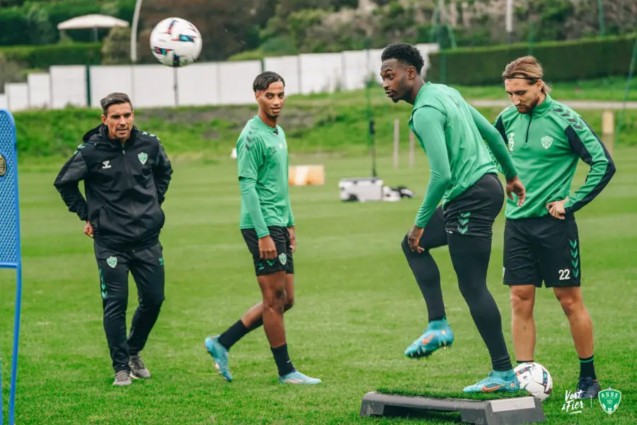 Nous apercevons Jibril Othman. Le jeune attaquant qui brille avec la réserve (4 réalisations cette saison) a enchaîné les entraînements avec le groupe pro cette semaine. Jean-Philippe Krasso suspendu, il pourrait faire son apparition dans le groupe annoncé ce soir par le coach stéphanois.