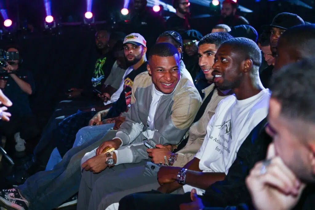 Layvin KURZAWA of PSG, Kylian MBAPPE of PSG, Achraf HAKIMI of PSG and Ousmane DEMBELE of PSG during the Professional Fighters League - MMA at Zenith Paris on September 30, 2023 in Paris, France. (Photo by Anthony Dibon/Icon Sport)
