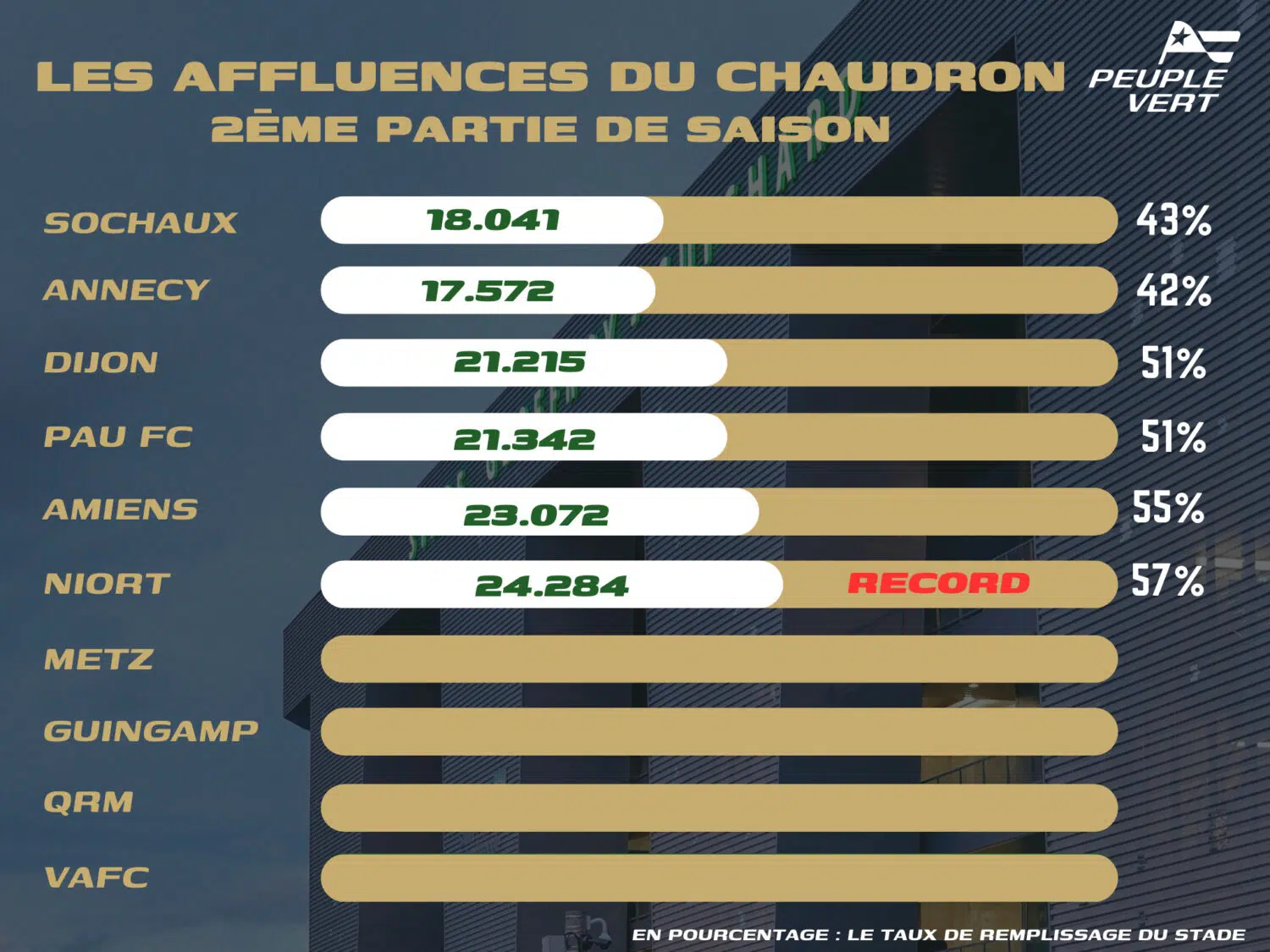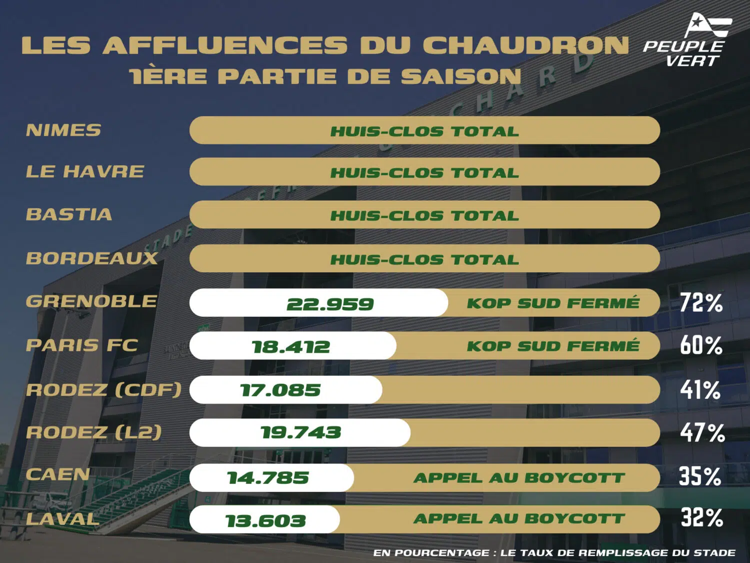 Alors lorsqu’une partie de l’entre a réouvert (le Kop Sud était encore fermé 2 matchs), les fans des Verts ont investi en nombre les tribunes : 22.959 supporters. Un chiffre qui a constitué le record d'affluence de la saison pendant plus de 5 mois. S'en est ensuite suivie une rencontre face au Paris FC puis deux face à Rodez avant la trêve internationale pour cause de Coupe du Monde.