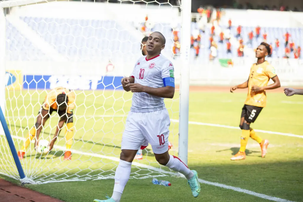 Wahbi Khazri of Tunisia celebrates goal during the Qatar 2022 FIFA World Cup qualifier between Zambia and Tunisia at Levy Mwanawasa Stadium, Ndola, Zambia on 07 September 2021 ©Sports Inc - Wahbi KHAZRI - (Zambie)