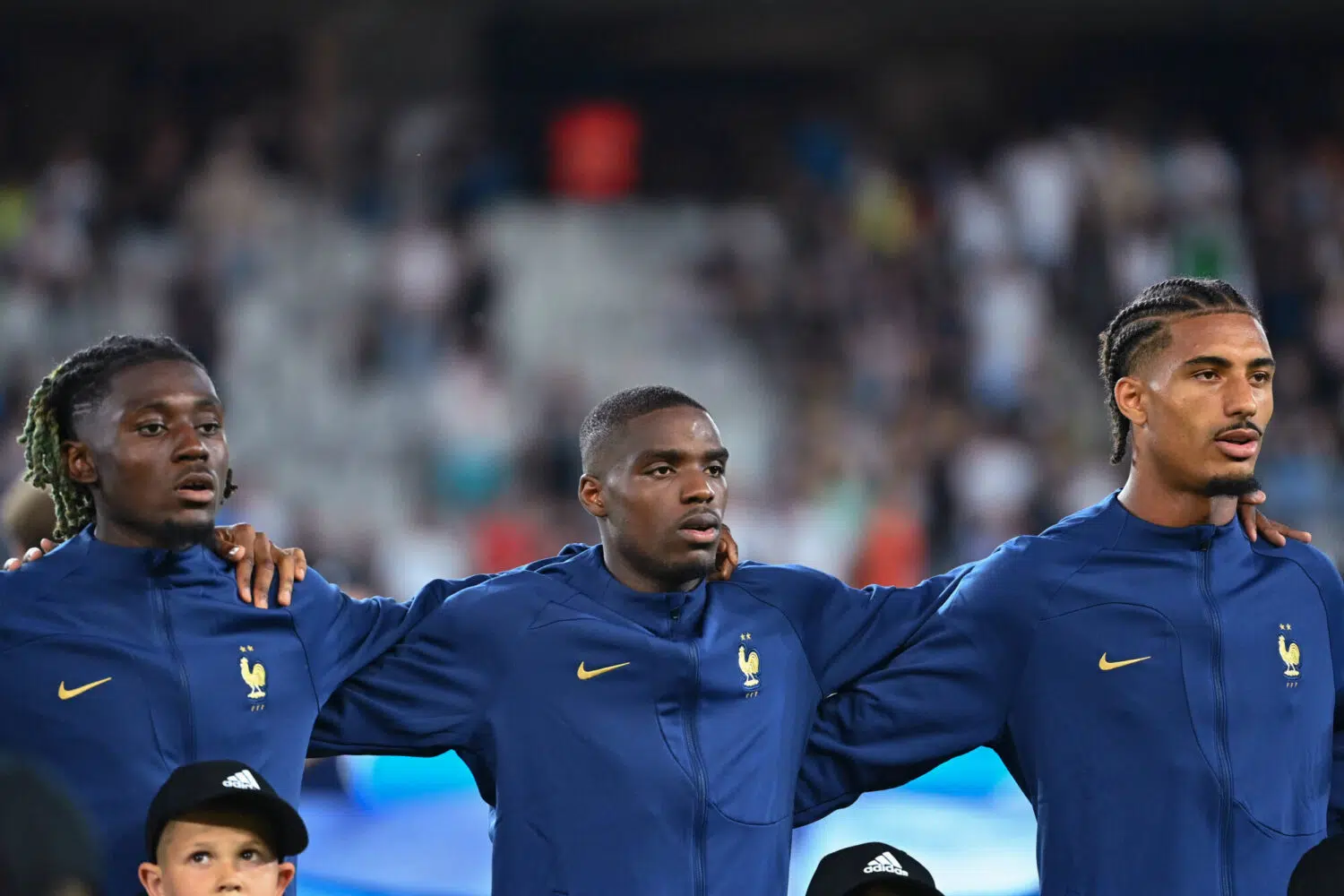 Kouadio KONE of France, Niels NKOUNKOU of France, Loic BADE of France during the U21 EURO 2023, match between France and Italy on June 22, 2023 in Cluj-Napoca, Romania. (Photo by Anthony Dibon/Icon Sport )