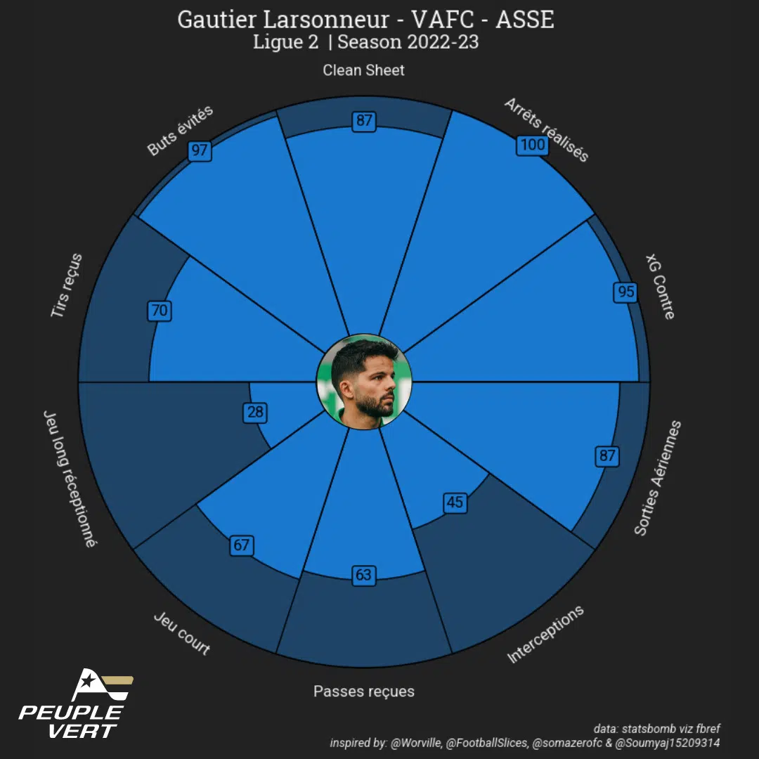 En nous penchant sur les chiffres, nous observons de simples confirmations. Gautier Larsonneur s'est montré particulièrement décisif. Que ce soit à Valenciennes ou à l'ASSE, il a réalisé des arrêts déterminants pour ses équipes.