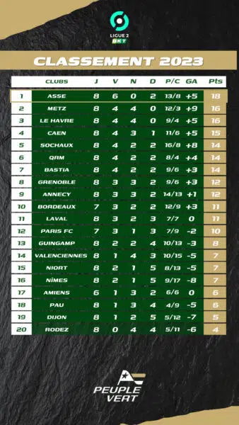 On était loin d'imaginer de tels résultats au soir le 31 janvier dernier à Bastia. Bien malin celui qui pouvait prévoir un tel redressement le 26 décembre dernier après la défaite morose à Annecy. Et pourtant les Verts cartonnent en ce début d'année 2023. 6 victoires pour seulement 2 défaites. 18 points obtenus sur 24 possibles. C'est bien simple. Personne ne fait mieux en Ligue 2. Alors jusqu’où pourront aller les Verts ?