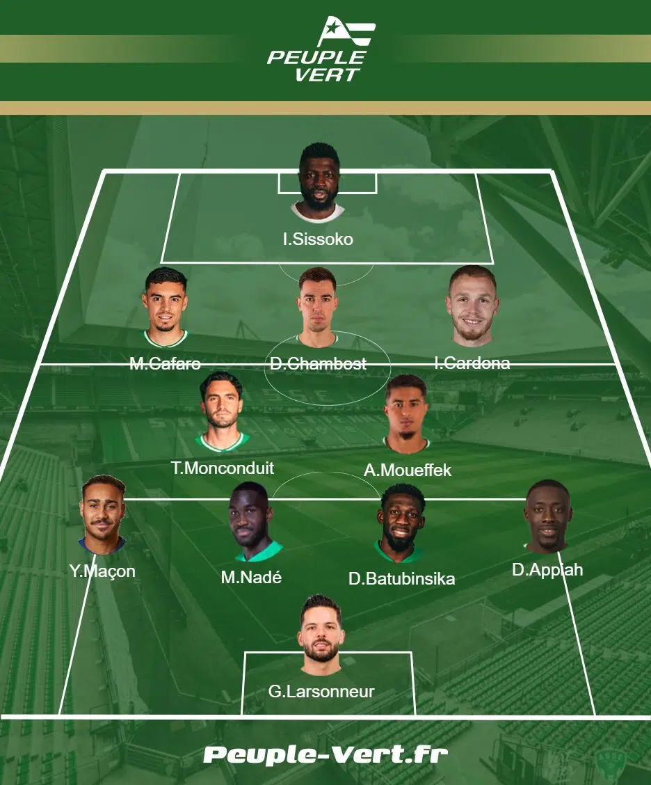 Enfin, Ibrahim Sissoko occupera la pointe de l’attaque des verts. L’attaquant international malien n’a pas beaucoup été en vue à Paris. Pas aidé par le terrain ni par le peu de ballon qu’il a pu jouer, il n’a pas réalisé une très bonne prestation à Charléty. Toutefois, il aura peut-être plus l’occasion de s’exprimer cet après-midi.