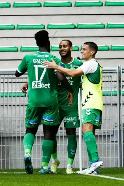 42 Etienne GREEN (asse) - 23 Anthony BRIANCON (asse) during the Ligue 2 BKT match between Saint-Etienne and Grenoble at Stade Geoffroy-Guichard on October 1, 2022 in Saint-Etienne, France. (Photo by Dave Winter/FEP/Icon Sport) - Photo by Icon sport