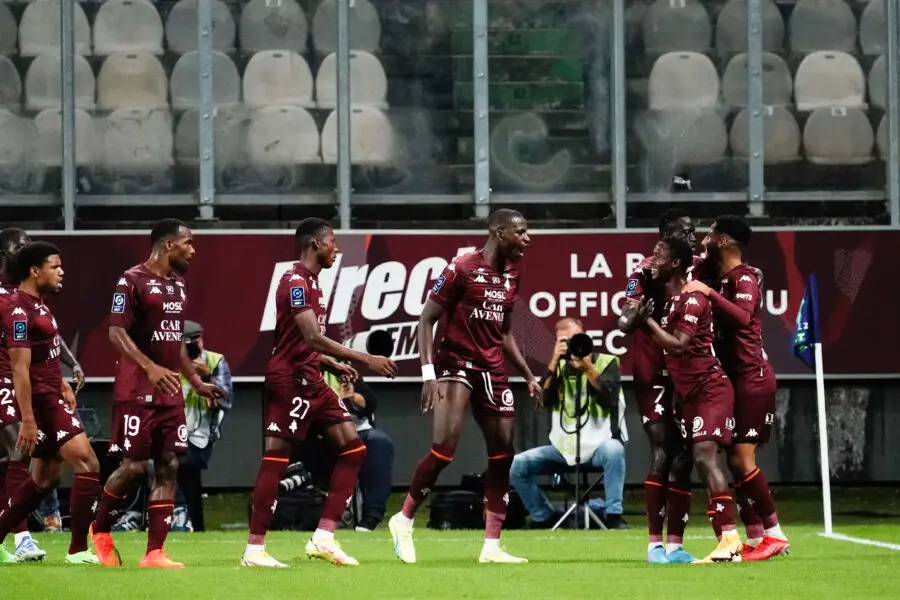 04 Boubacar KOUYATE (fcm) - 19 Habib MAIGA (fcm) - 36 Ablie JALLOW (fcm) during the Ligue 2 BKT match between Metz and Guingamp at Stade Saint-Symphorien on September 12, 2022 in Metz, France. (Photo by Dave Winter/FEP/Icon Sport) - Photo by Icon sport
