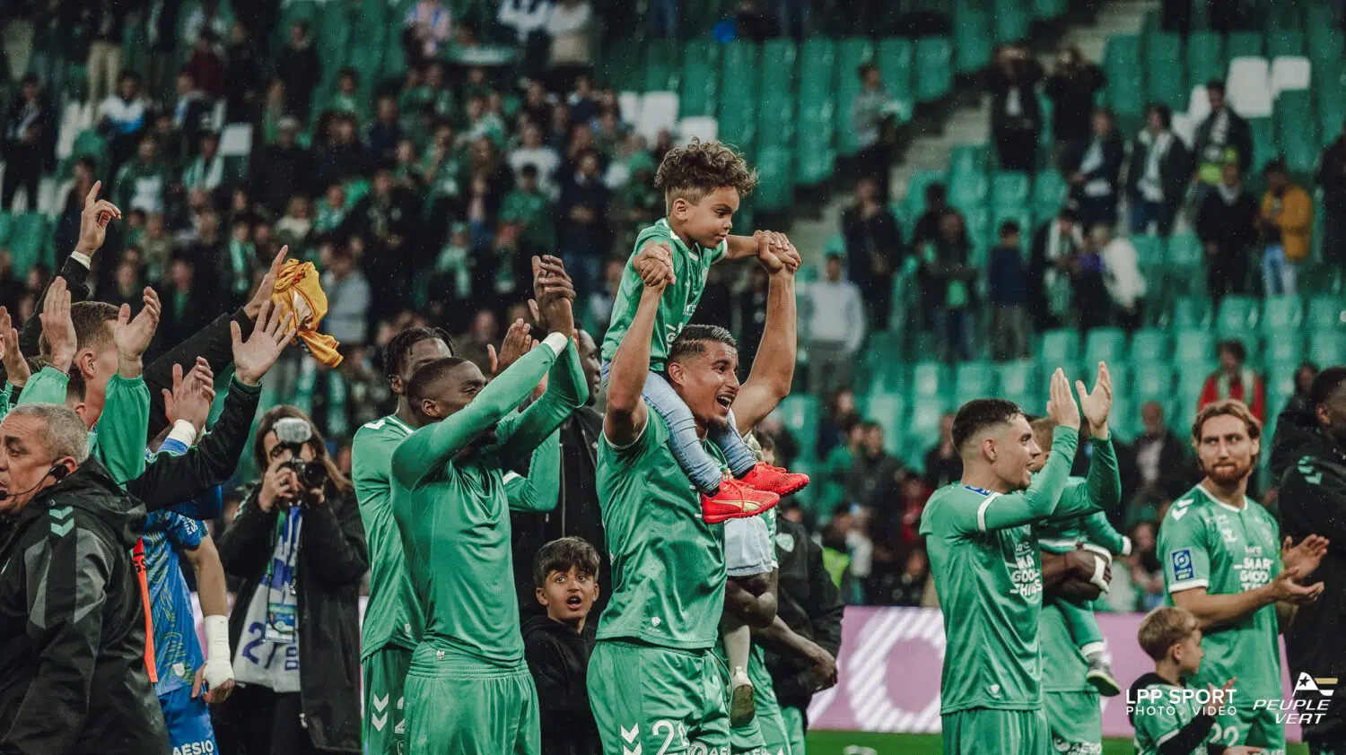 Célébration d'Aïmen Moueffek avec son fils lors d'ASSE - QRM