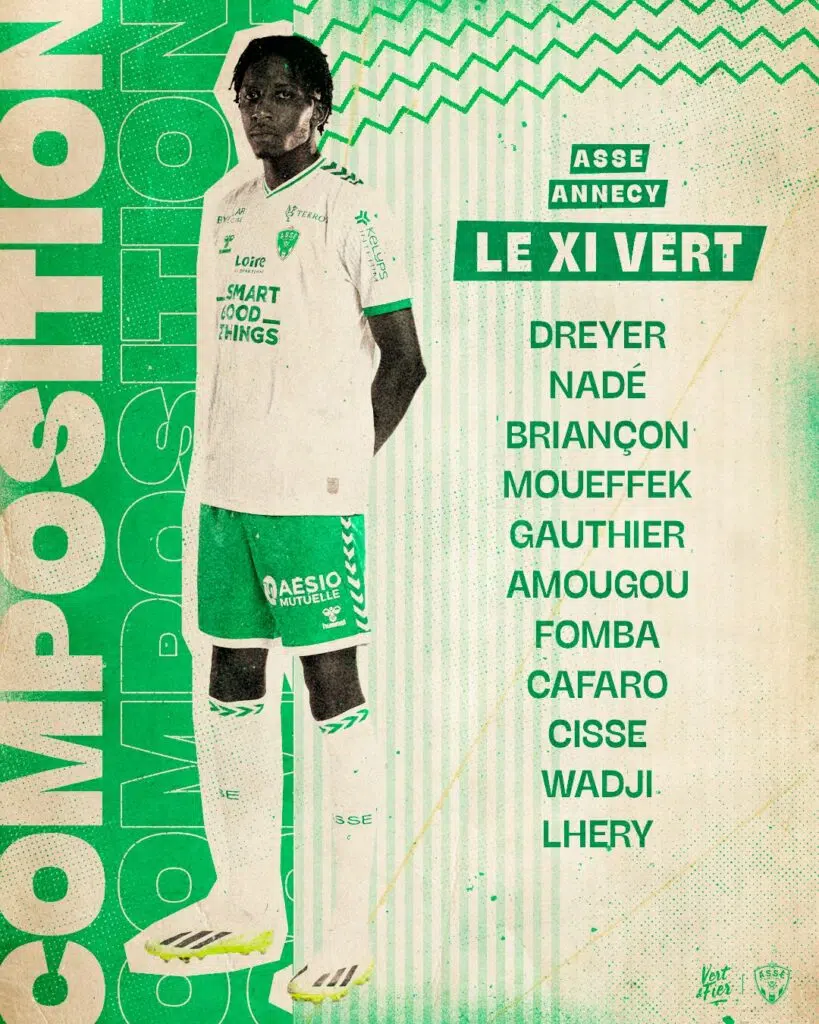 Réaction immédiate de L'ASSE, ibrahima Wadji suite à un bon pressing, récupére le ballon haut et trompe la vigilance du gardien d'Annecy. 2-1 pour les Verts !