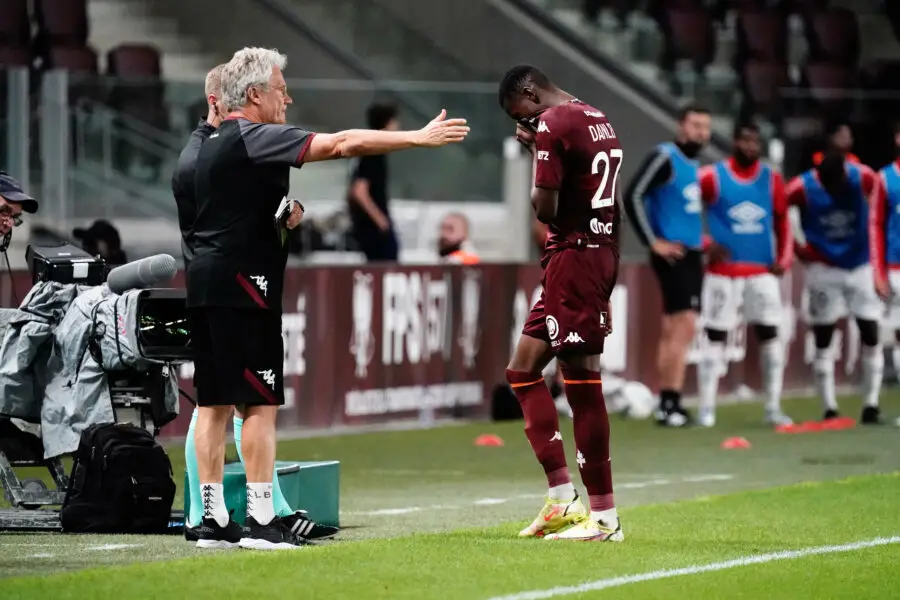 Laszlo BOLONI (Entraineur Metz FCM) - 27 Danley JEAN JACQUES (fcm) during the Ligue 2 BKT match between Metz and Guingamp at Stade Saint-Symphorien on September 12, 2022 in Metz, France. (Photo by Dave Winter/FEP/Icon Sport) - Photo by Icon sport