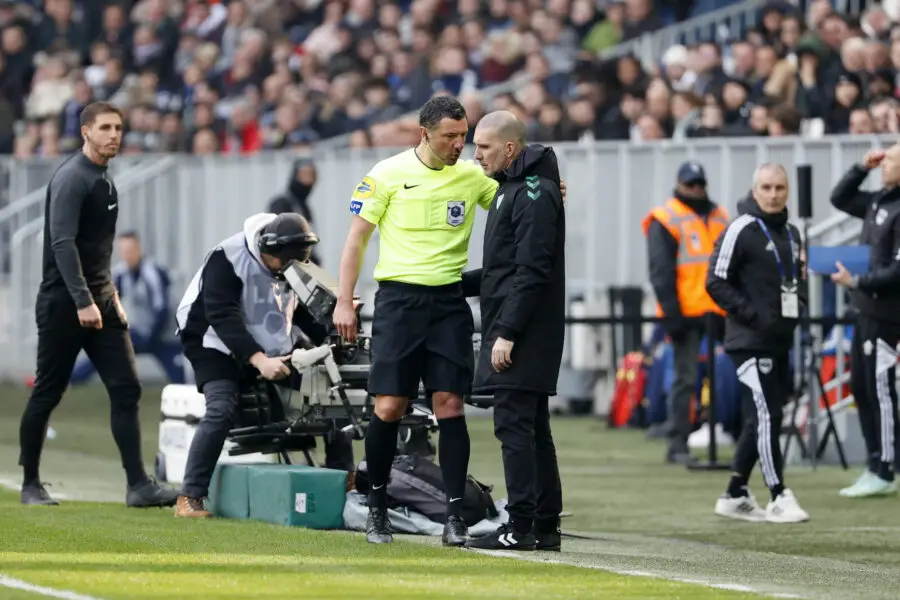 Nicolas RAINVILLE (ARBITRE) - Laurent BATLLES (Entraineur Saint-Etienne ASSE) during the Ligue 2 BKT match between Bordeaux and Saint Etienne at Stade Matmut Atlantique on March 4, 2023 in Bordeaux, France. (Photo by Romain Perrocheau/FEP/Icon Sport)