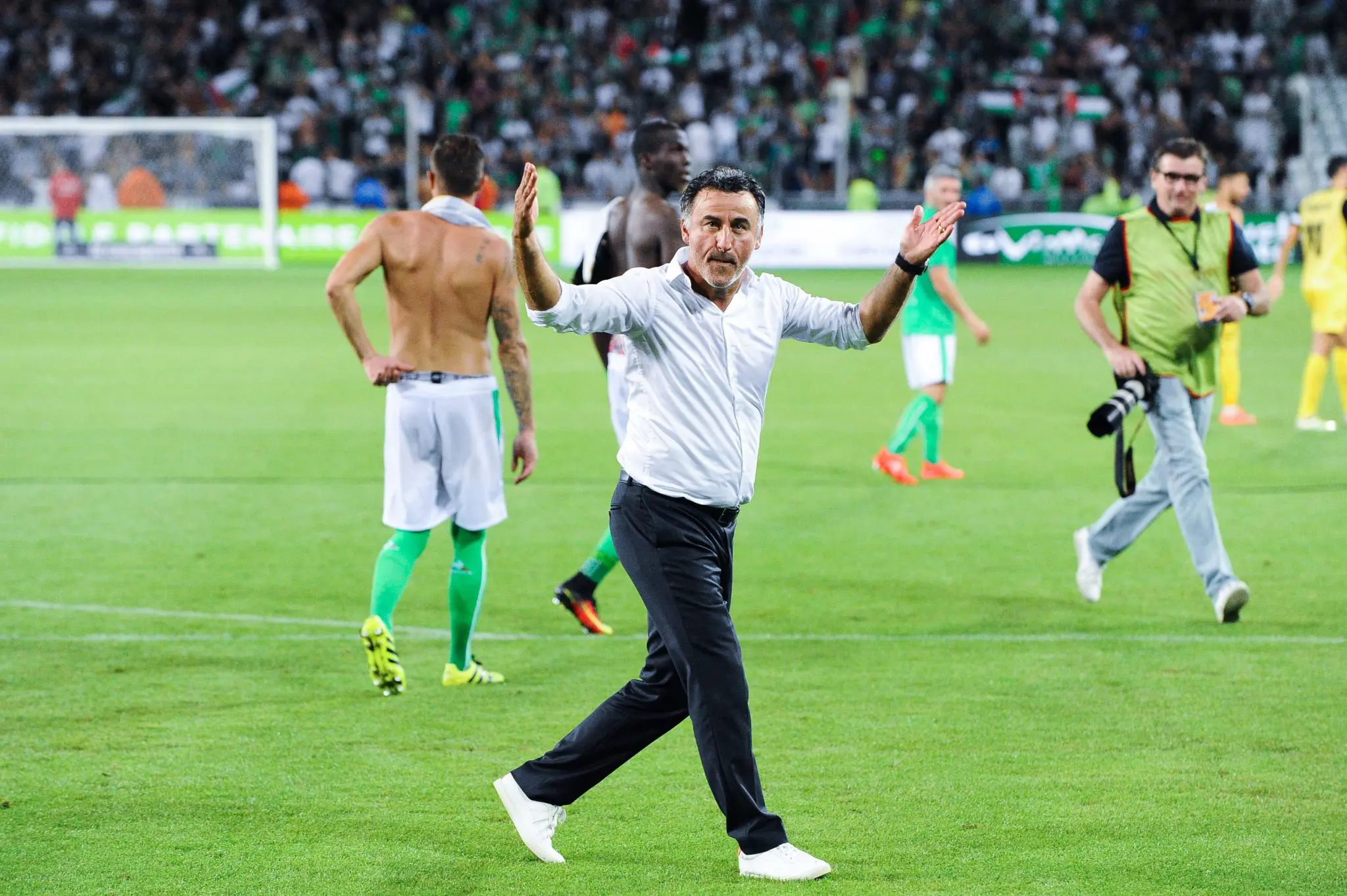 Christophe GALTIER coach of Saint Etienne celebrates scoring his goal during the UEFA Europa League match between Saint Etienne and Beitar Jerusalem at Stade Geoffroy-Guichard on August 25, 2016 in Sa