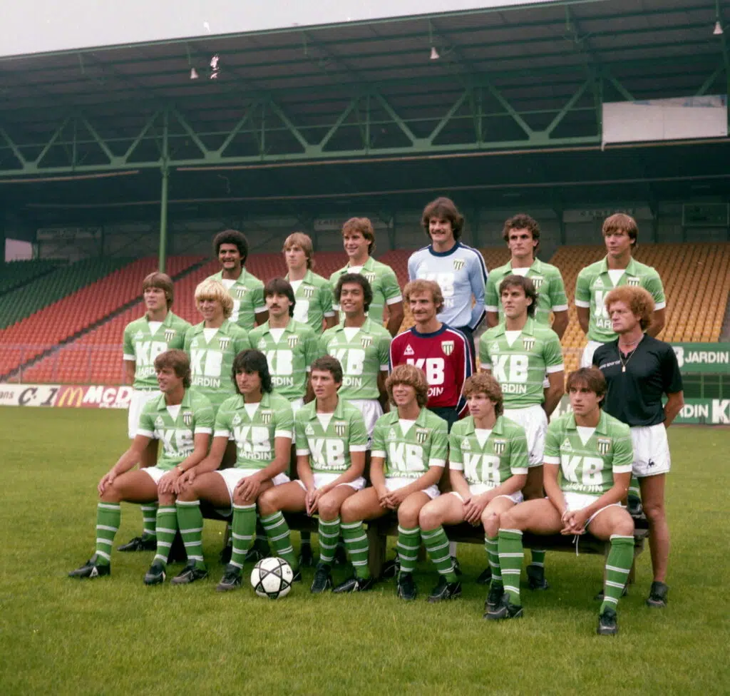 Team of Saint Etienne in July 1982 at Geoffroy Guichard for official photo: